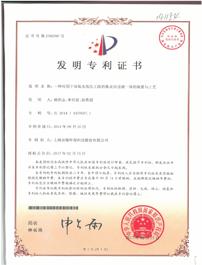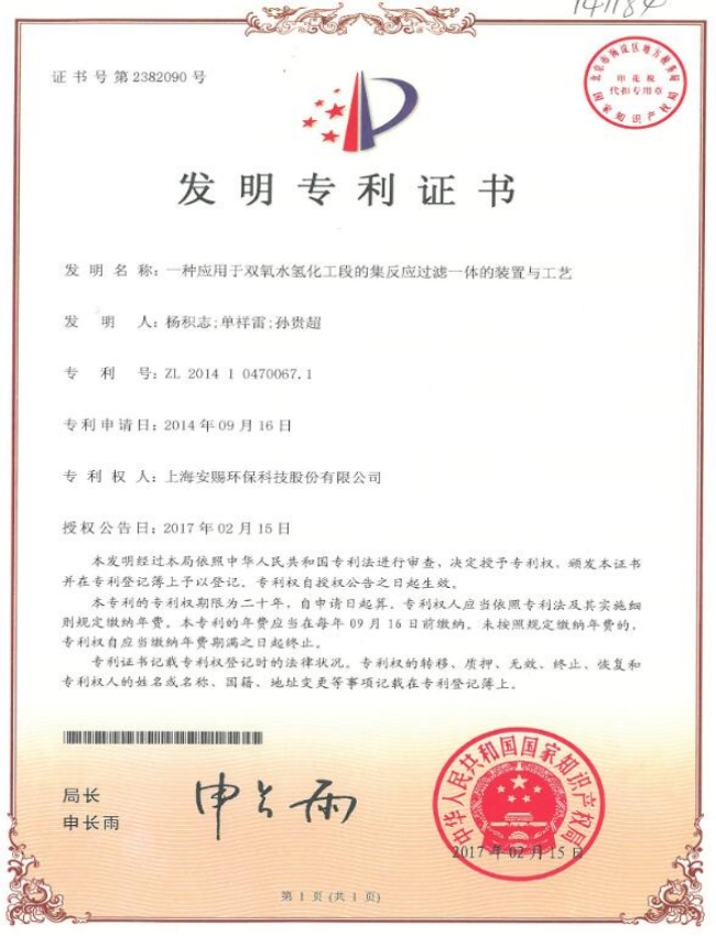 安赐环保秉承“用心服务与协作,为客户创造价值”的经营理念,作为一家研发型高新技术企业,自2008年成立以来,以研发、设计为中心,安赐公司不断发展壮大,不但建成了设施完善(拥有20多套涵盖17条产品线的工业化试验装置)的多相流研究开发实验中心,而且还成功申请了150多项专利技术,其中发明专利授权30多项。2015年荣获上海市专利试点企业 。2017年6月顺利通过知识产权管理体系认证。